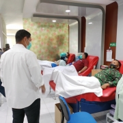 KEDIRI – Dandim 0809/Kediri Letkol Kav Dwi Agung Sutrisno SE Msi (Han) bersama Forkopimda Kota Kediri mengantar penyintas covid-19 ke Kantor PMI Kota Kediri Jln. Mayor Bismo No. 15 Kota Kediri. Selasa (26/1/2021). Dalam kegiatan Donor Plasma di Kantor PMI Kota Kediri Total ada 7 penyintas yang mendonorkan plasma konvalesennya. Hal ini merupakan bagian dari Gerakan Donor Plasma Konvalesen (Gedor Pasen) yang diluncurkan sebagai upaya paripurna Pemerintah Kota Kediri dalam menghadapi covid-19. Sudah banyak upaya yang telah dilakukan oleh Pemerintah Kota Kediri dengan melakukan berbagai kegiatan seperti menekan penyebaran covid-19, pengobatan bagi yang sakit, jaring pengaman sosial, mendorong perputaran ekonomi dan vaksinasi yang akan dicanangkan pada Rabu (27/1/2021). Dalam kesempatannya Dandim 0809/Kediri Letkol Kav Dwi Agung Sutrisno mengatakan,” plasma konvalesen adalah sesuatu yang sangat bermanfaat dan menjadi sedekah yang luar biasa untuk menyelamatkan nyawa manusia. Selain mendorong para penyintas untuk mendonorkan plasma konvalesennya melalui PMI, Dandim Kediri mengungkapkan Gedor Pasen ini dapat mengedukasi masyarakat bahwa penyintas covid-19 tidak perlu dikucilkan. “Dalam tubuh penyintas covid-19 ada plasma yang bisa membantu kesembuhan bagi pasien covid-19 yang ada di rumah sakit. Mereka ini ibaratnya from survivor to hero,”. Forkopimda Kota Kediri mendukung penuh upaya Kota Kediri dalam penanganan covid-19 melalui Gedor Pasen. Kami berharap penyintas covid-19 untuk datang ke PMI mendonorkan plasmanya. “Kami mendukung adanya donor plasma konvalesen yang dapat menyelamatkan banyak nyawa saudara-saudara kita. Tentunya bagi yang sudah sembuh dari covid bisa mendonorkan plasmanya untuk mendorong saudara-audara kita,” ujarnya. Kapolres Kediri Kota, AKBP Eko Prasetyo juga mendukung upaya Pemerintah Kota Kediri mensukseskan Gedor Pasen dan mengajak masyarakat yang sudah sembuh dari covid-19 untuk mendonorkan plasmanya. “Alhamdulillah hari ini dari Forkopimda sudah mendapatkan pendonor plasma konvalesen. Ini upaya Forkopimda untuk menekan angka kematian. Mudah-mudahan ini bisa diikuti masyarakat yang sudah sembuh dari covid,” ungkapnya. Hal senada juga diungkapkan oleh Kepala Kejaksaan Negeri Kota Kediri Sofyan Selle. “Kita dari Forkopimda dalam rangka membantu masyarakat kita yang sedang terjangkit covid-19 dengan donor konvalesen. Melalui kegiatan ini mudah-mudahan dapat menurunkan angka kematian covid-19,” ujarnya.(Penrem 082/CPYJ)