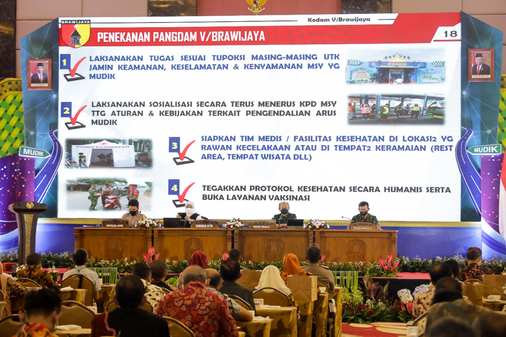 Pangdam V/Brawijaya Bersama Forkopimda Jatim Gelar Rakor Angkutan Lebaran Tahun 2022