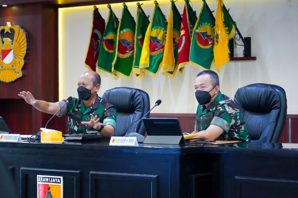 Batu – Pangdam V/Brawijaya Mayjen TNI Nurchahyanto, M.Sc., bersama Forkopimda Jawa Timur menggelar Rapat Koordinasi Angkutan Lebaran Tahun 2022 bertempat di Hotel Singhasari Resort, Kota Batu, Sabtu, (23/4/2022).