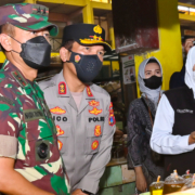 Surabaya : Pangdam V/Brawijaya Mayjen TNI Nurchahyanto M.Sc., bersama Jajaran Forkopimda Jawa Timur melakukan kegiatan kunjungan kerja dalam rangka pengecekan harga minyak goreng di Pasar Tradisional Sopoyono Rungkut Surabaya.