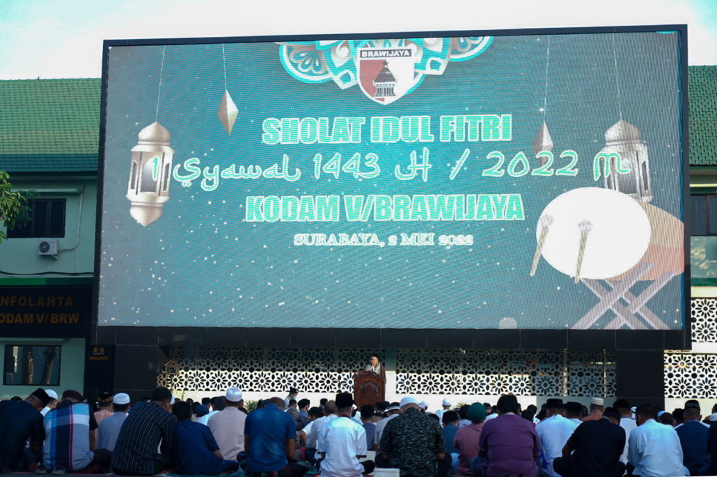 Surabaya – Pangdam V/Brawijaya Mayjen TNI Nurchahyanto melaksanakan kegiatan shalat Idul Fitri 1443 H di Lapangan A. Yani Makodam V/Brawijaya Jalan Raden Wijaya no.1 Surabaya, Senin, (2/5/2022).