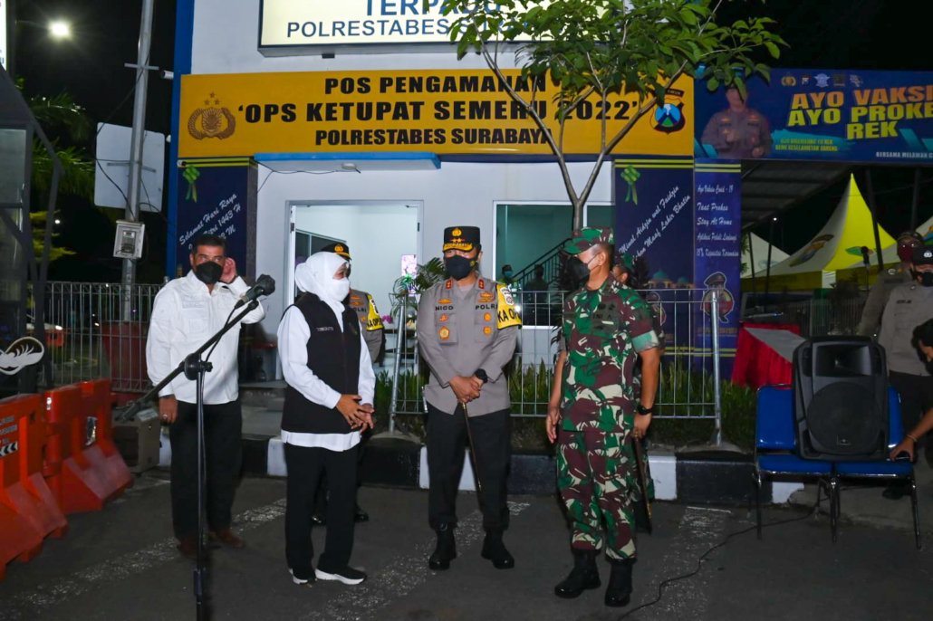 Dalam kesempatan tersebut, Forkopimda yang dihadiri Gubernur Jawa Timur, Khofifah Indar Parawansa dan Kapolda Jatim Irjen Pol Nico Afinta mengecek kesiapan Pos Pelayanan yang ada di Darmo dan Pos Pengamanan di Bundaran Waru-Surabaya pada saat Mudik dan arus balik Lebaran Idul Fitri 1443 H.