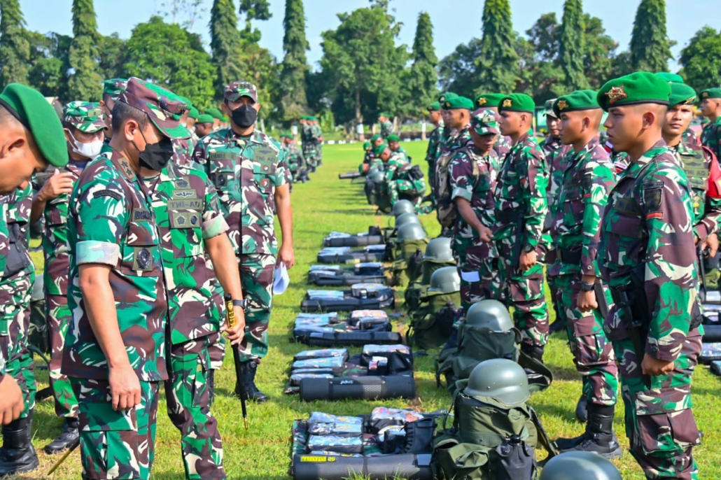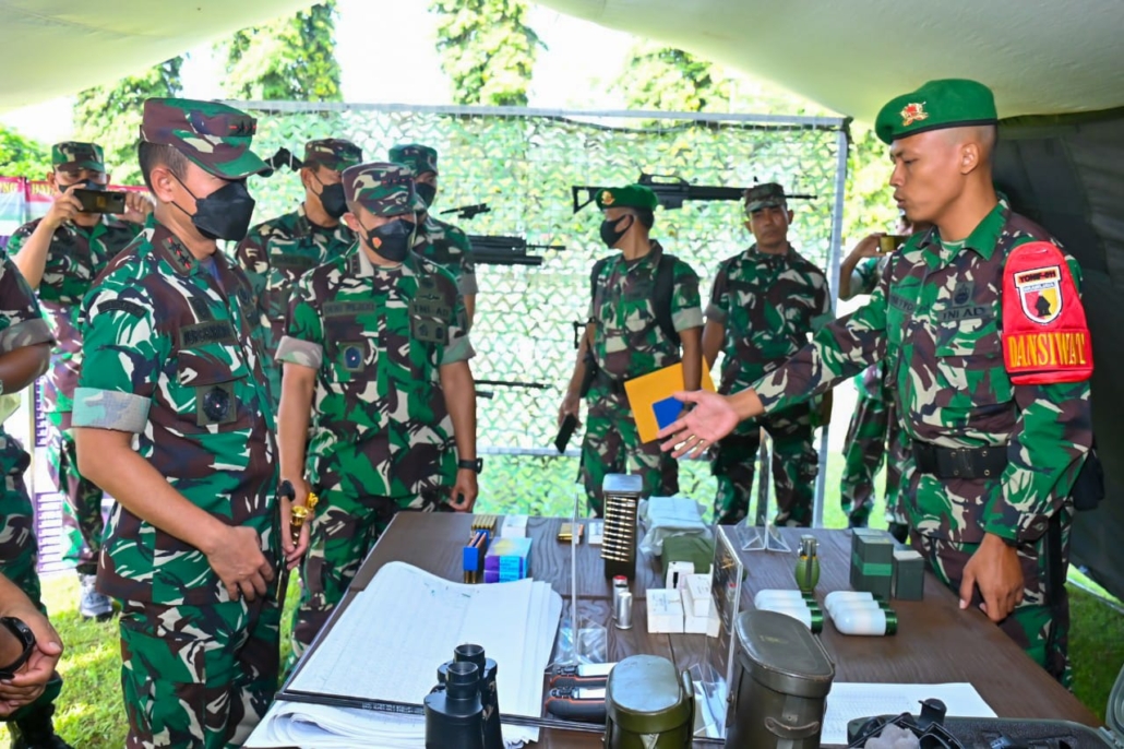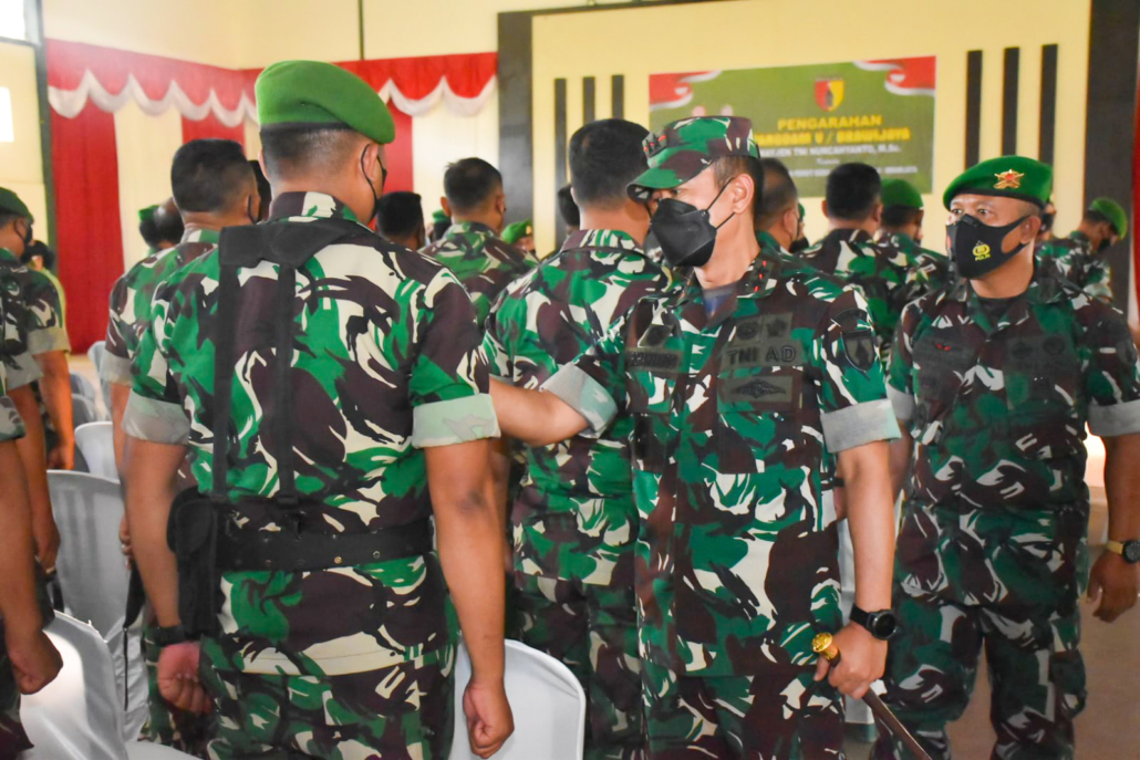 Situbondo – Pangdam V/Brawijaya Mayjen TNI Nurchahyanto, M.Sc., beserta Ketua Persit Kartika Chandra Kirana PD V/Brawijaya, Ny. Evy Nurchahyanto dan rombongan melaksanakan kunjungan kerja ke Depo Pendidikan Latihan dan Pertempuran Resimen Induk Kodam V/Brawijaya (Dodiklatpur Rindam V/Brawijaya) Desa Kedunglo, Awar-Awar Kecamatan Asembagus-Situbondo, Jawa Timur, Selasa, (19/7/2022).