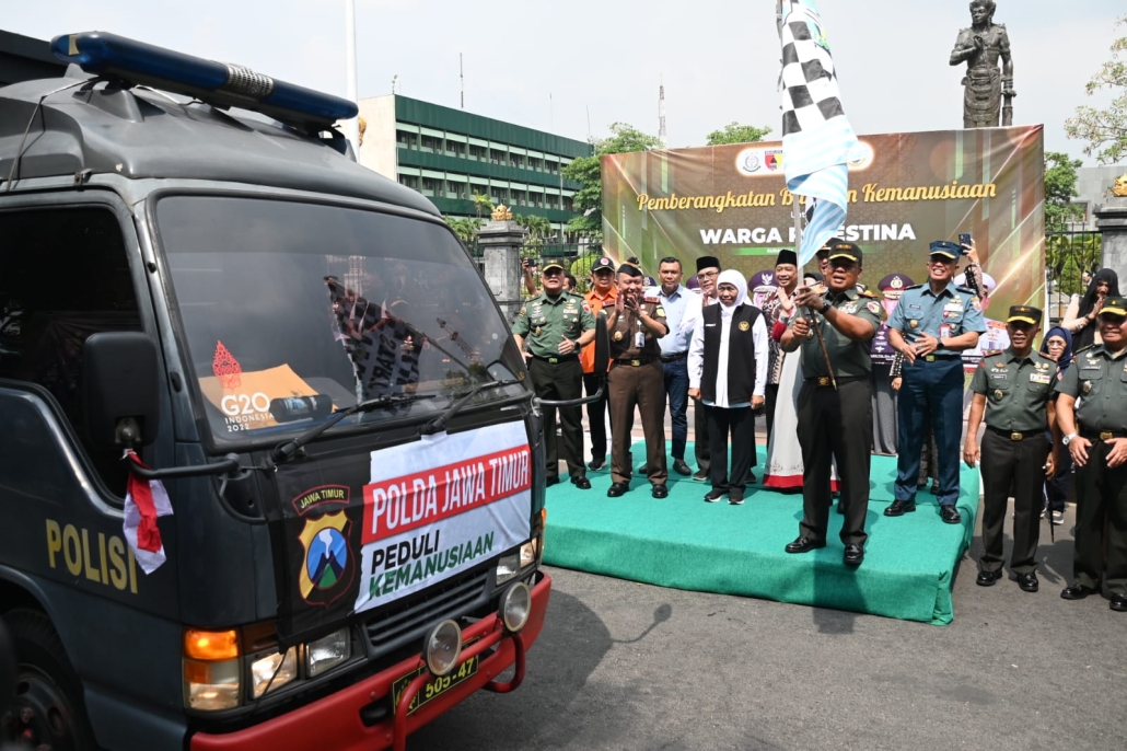 Pangdam V/Brw bersama Forkopimda Jatim melepas Pemberangkatan Bantuan Kemanusiaan Gaza Palestina