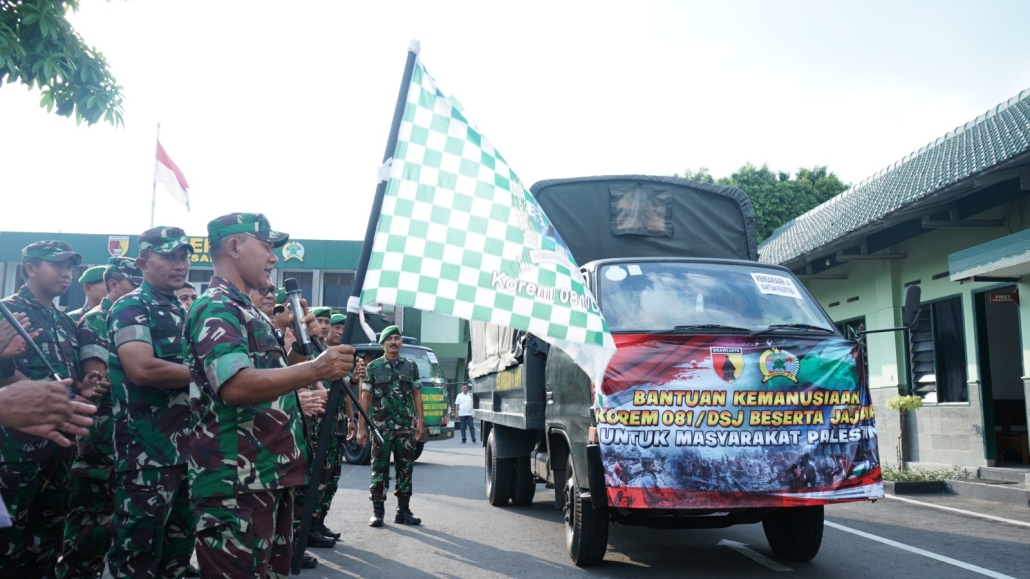 MADIUN. Pendam V || Kolonel Inf H Sugiyono, E.Sos.M.Si pimpin langsung pemberangkatan bantuan kemanusiaan untuk masyarakat Palestina, bersama tim yang penuh dedikasi, kami mengirimkan obat-obatan, Air Mineral, Mantel, Susu Bayi, Pakaian Wanita dan Pria serta Selimut sebagai bentuk dukungan kami bagi saudara-saudara kita di Palestina.