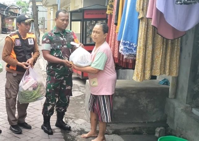 SITUBONDO, Pendam V || Dalam rangka menjalankan program Babinsa Masuk Dapur, Babinsa Kelurahan Mimbaan dari Koramil 0823/02 Panji Serka Nasrudin dan Serda Nurcahyono turut berkontribusi dalam membantu kepada masyarakat dengan memberikan paket sembako kepada salah satu warga yang sedang membutuhkan.