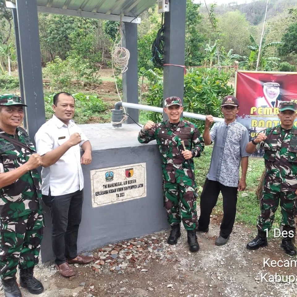 Ponorogo, Pendam V || Komandan Kodim 0802/Ponorogo, Letkol Inf Hirta Juni Adriansyah, S. Sos. M. Han. menyerahkan bantuan sumur bor dari Gubernur Jawa Timur kepada warga Desa Karangan, Kecamatan Badegan, Kabupaten Ponorogo,
