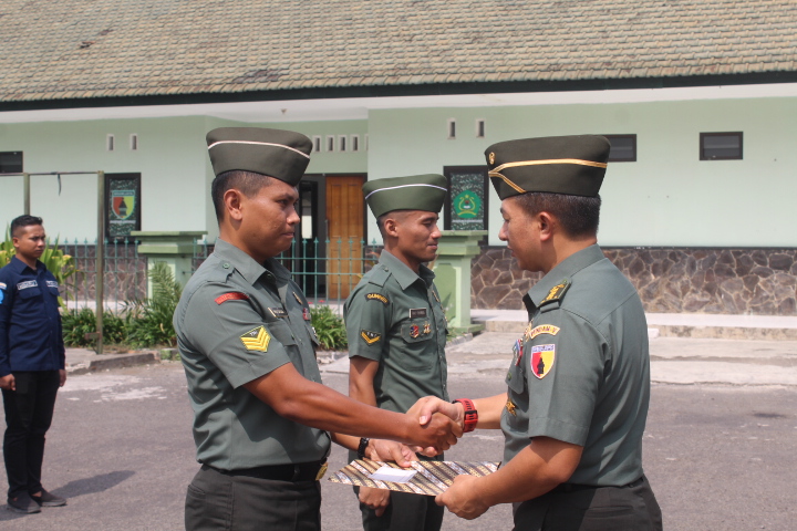 SURABAYA. Pendam V || Kolonel Inf Rendra Dwi Ardhani Kapendam V/Brw dalam sebuah momen perpisahan, kami melepas salah satu personel terbaiknya Serda Riki Rimba yang akan pindah satuan ke Kodim 1606/Mataram dan Serka Muhammad Sa’idun yang pindah satuan Minvetcad V/14 Jombang.
