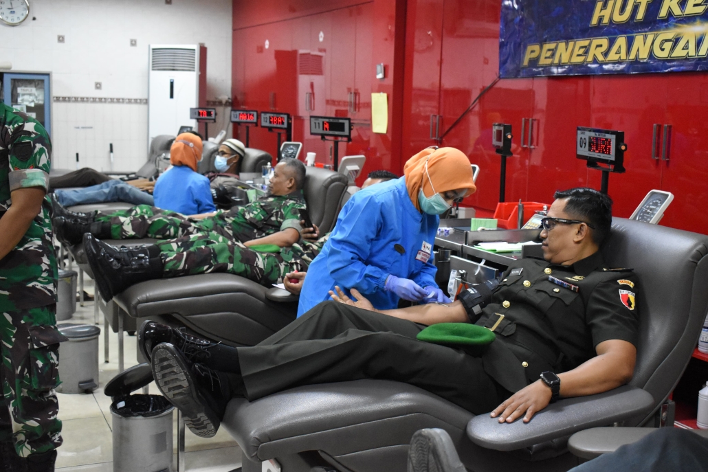 Selanjutnya, anggota Prajurit dan PNS Pendam V/Brawijaya melanjutkan kegiatan bakti sosial dengan mengunjungi Unit Transfusi Darah Palang Merah Indonesia (PMI) Kota Surabaya di Jalan Embong Ploso. Kedatangan mereka adalah untuk melaksanakan donor darah, sebagai bentuk kontribusi nyata dalam membantu saudara-saudara kita yang membutuhkan bantuan darah.