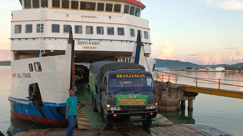 Untuk hari ini terdapat empat truk yang datang di pulau Bawean mengangkut bantuan, satu unit dari Kodim 0817/Gresik, dua unit dari Yonif 516/CY dan satu unit dari Pol PP Kabupaten Gresik. Masing-masing truk membawa 1.000 paket bantuan yang terdiri dari 10 item, yaitu Beras 5 Kg, Minyak goreng 1 Kg, Mie Instan 10 Pcs, Gula 1 Kg, Tepung 1 Kg, Susu 1 Kaleng, Kecap 1 Buah, Saos 1 Buah, Sarden 1 Kaleng, dan Teh Celup 1 Kotak.