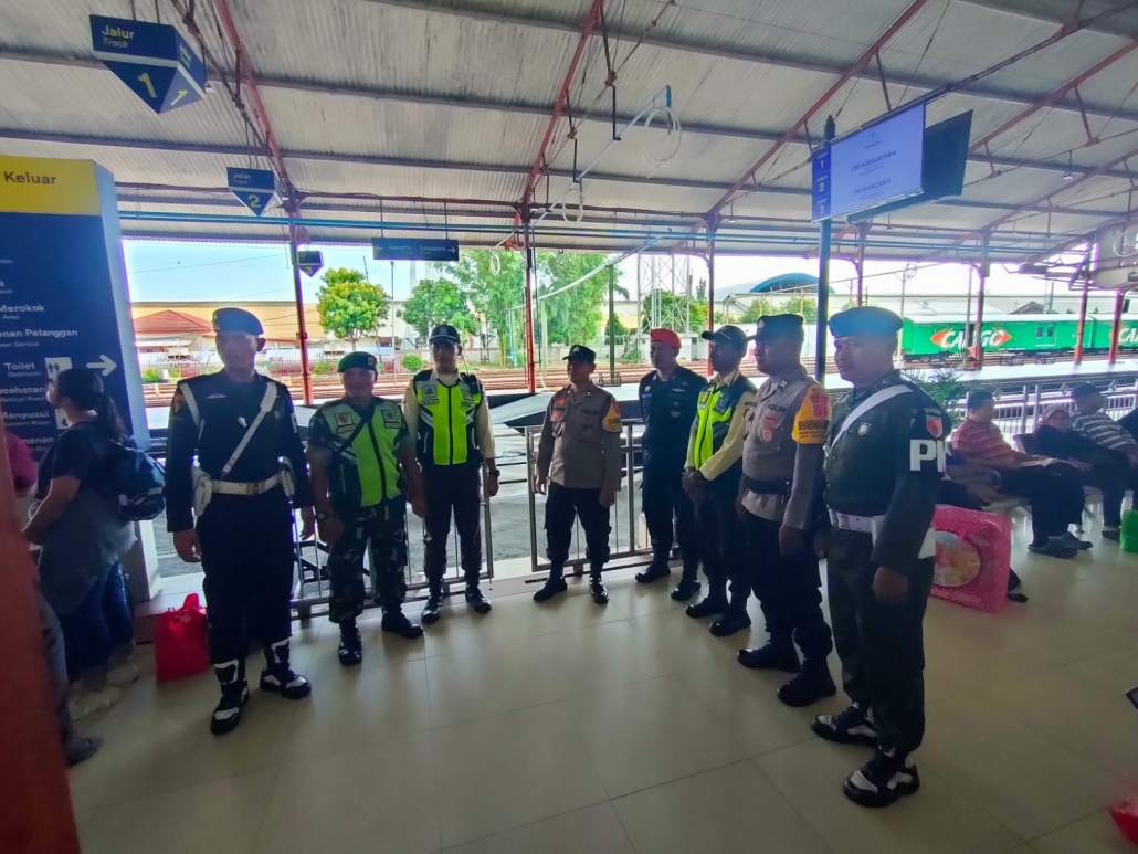 Madiun, Jawa Timur – Kodim 0803/Madiun bersama dengan Polres Madiun Kota dan mengerahkan personelnya untuk mengamankan puncak arus balik Hari Raya Idul Fitri 1445 H/2024 M di Stasiun Kota Madiun. Minggu (14/4/2024).