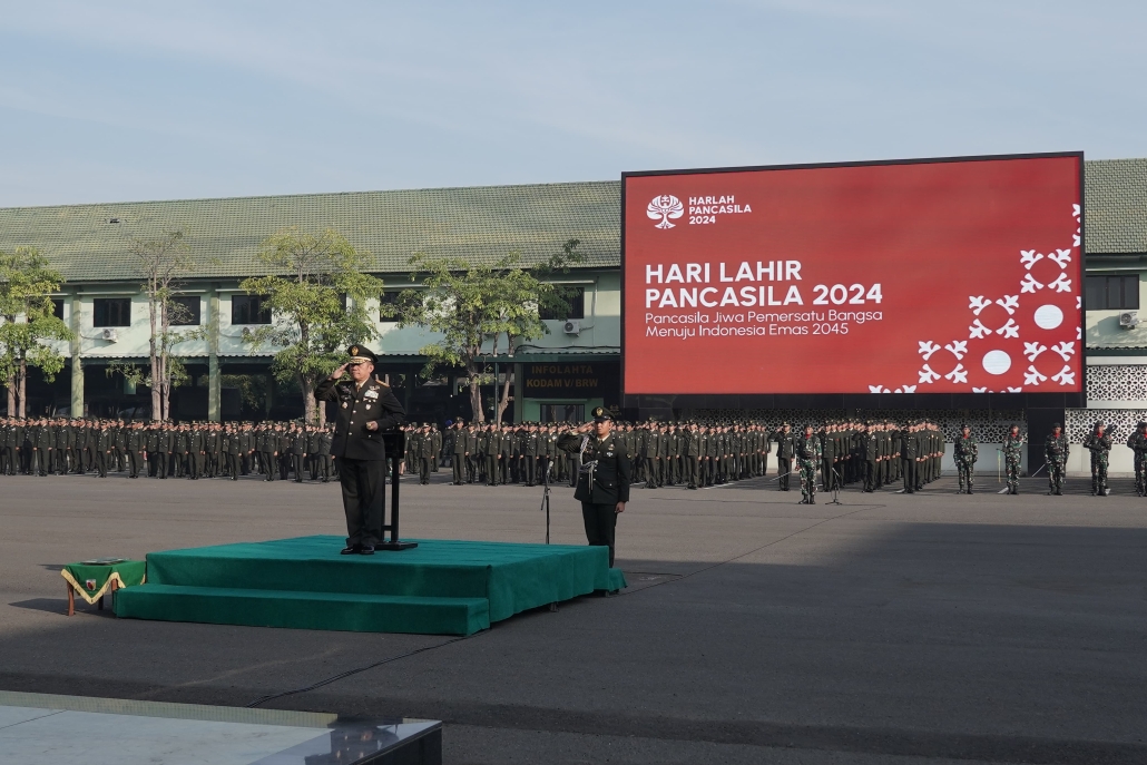 Upacara yang berlangsung khidmat ini dihadiri oleh Kasdam V/Brawijaya, Brigjen TNI Endro Satoto, beserta seluruh jajaran Forkopimda Jawa Timur, pimpinan OPD, dan segenap tamu undangan. Mengusung tema “Pancasila Jiwa Pemersatu Bangsa Menuju Indonesia Emas 2045”, upacara ini menjadi momen penting untuk meneguhkan kembali komitmen bangsa dalam menjaga dan mengamalkan nilai-nilai luhur Pancasila.