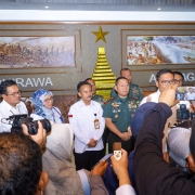 Dansatgas TMMD memaparkan capaian target sasaran fisik dan non fisik serta progres program di hadapan Danpusterad dan tamu undangan.
