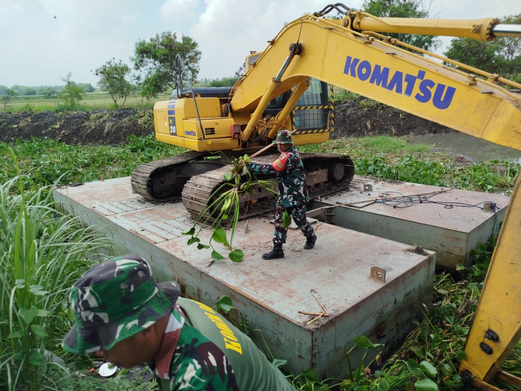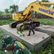 Anggota Koramil 0816/03 Buduran bersama masyarakat setempat bahu – membahu membersihkan dan mengangkat eceng gondok yang banyak di sungai, guna kelancaran aliran air yang berguna untuk mengaliri persawahan sesuai dengan program pemerintah yaitu ketahanan pangan.