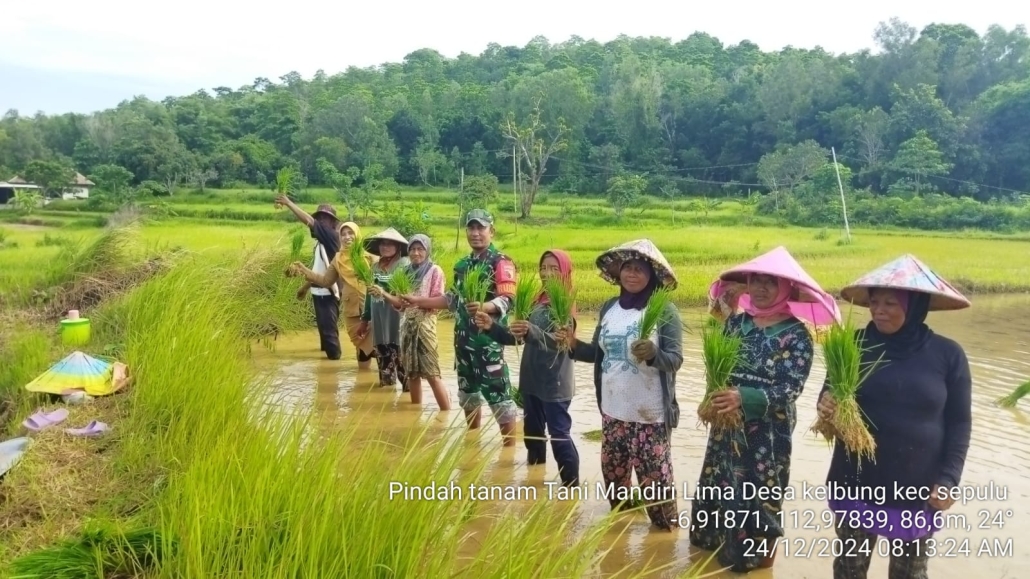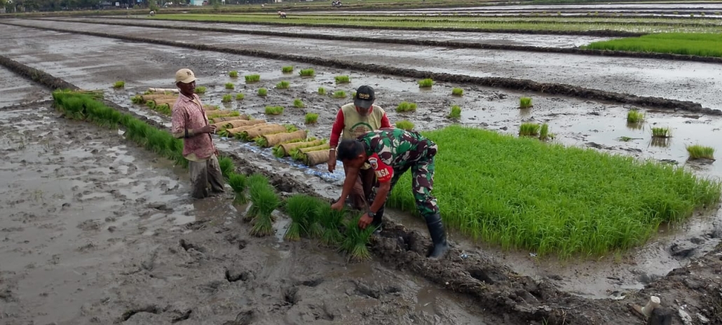 Bangkalan – Babinsa Koramil 16/Sepulu Kodim 0829/Bangkalan Koptu Usman Ali turun langsung ke sawah membantu petani desa binaan milik bapak Hafid di Desa Kelbung, Kec. Sepulu, Kab.Bangkalan.