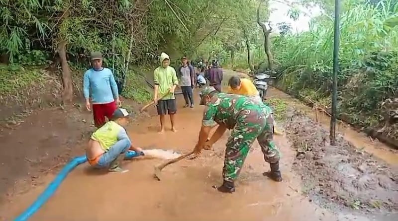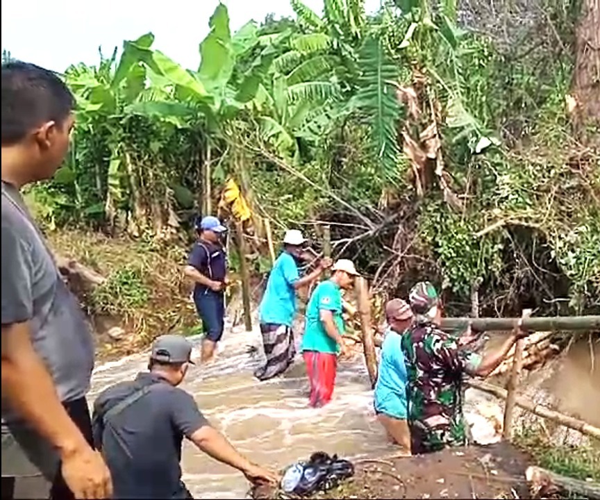 Babinsa dan Masyarakat Gotong Royong Perbaiki Tanggul Jebol di Desa Jarangan