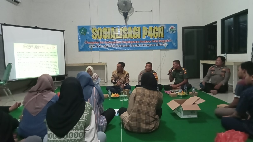 Sidoarjo, Dalam upaya meningkatkan kesadaran masyarakat, khususnya generasi muda, akan bahaya narkoba dan kenakalan remaja, Danramil 0816/12 Prambon, Kapten Inf. Moh. Said, menghadiri kegiatan sosialisasi yang diselenggarakan di Balai Desa Kedung Kembar, Kecamatan Prambon.