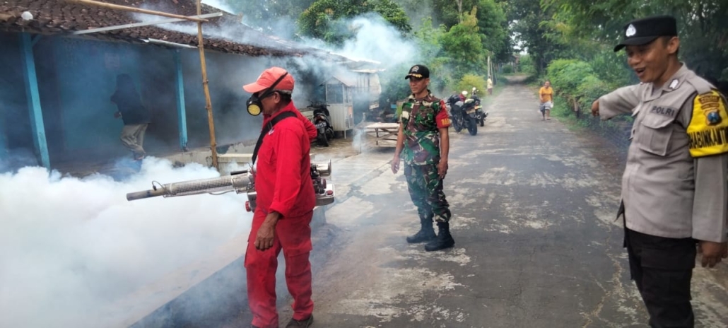 Penyemprotan fogging ini sendiri dilakukan karena guna mengantisipasi terhadap kasus gejala penyakit DBD yang disebabkan oleh nyamuk Aedes Aegypti yang terjadi. Sehingga penyemprotan atau fogging ini perlu dilakukan,” pungkas Sertu Suyono