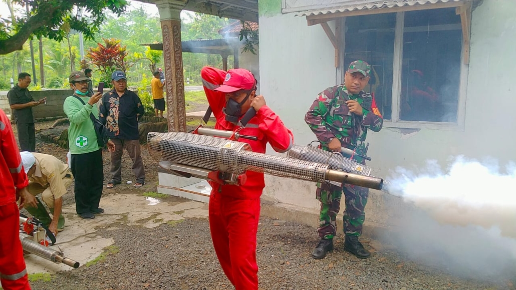 Lumajang,- Dalam upaya mencegah penyebaran demam berdarah dengue (DBD), Babinsa Ranuyoso dari Koramil 0821-06/Ranuyoso Koptu Suleman bersama Puskesmas Ranuyoso melaksanakan kegiatan fogging oleh Dinas Kesehatan Kabupaten Lumajang di pemukiman warga Dusun Krajan, Desa Ranuyoso, Kecamatan Ranuyoso, Kabupaten Lumajang, Jawa Timur.