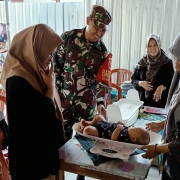 Kegiatan kali ini babinsa melaksanakan pendamping kepada tenaga kesehatan dan kader Posyandu dengan sasaran penimbangan berat badan, mengukur tinggi badan untuk mengetahui perkembangan dan pertumbuhan bayi serta pemberian vitamin kepada Balita untuk mencegah Stunting.