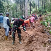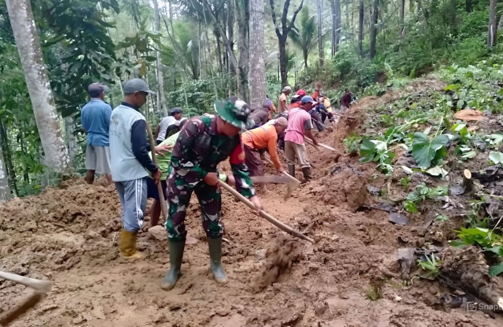 Semangat Gotong-Royong Warga dan TNI Pulihkan Akses Jalan di Desa Depok.
