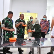“Berkaitan dengan program dari Bapak Presiden, kami diperintahkan untuk mengecek kualitas makanan yang akan disajikan. Dari hasil pengecekan, makanan ini sudah memenuhi standar gizi 4 sehat 5 sempurna. Ada sayur, ayam, buah, dan akan dilengkapi dengan susu,” ujar Kolonel Andi.