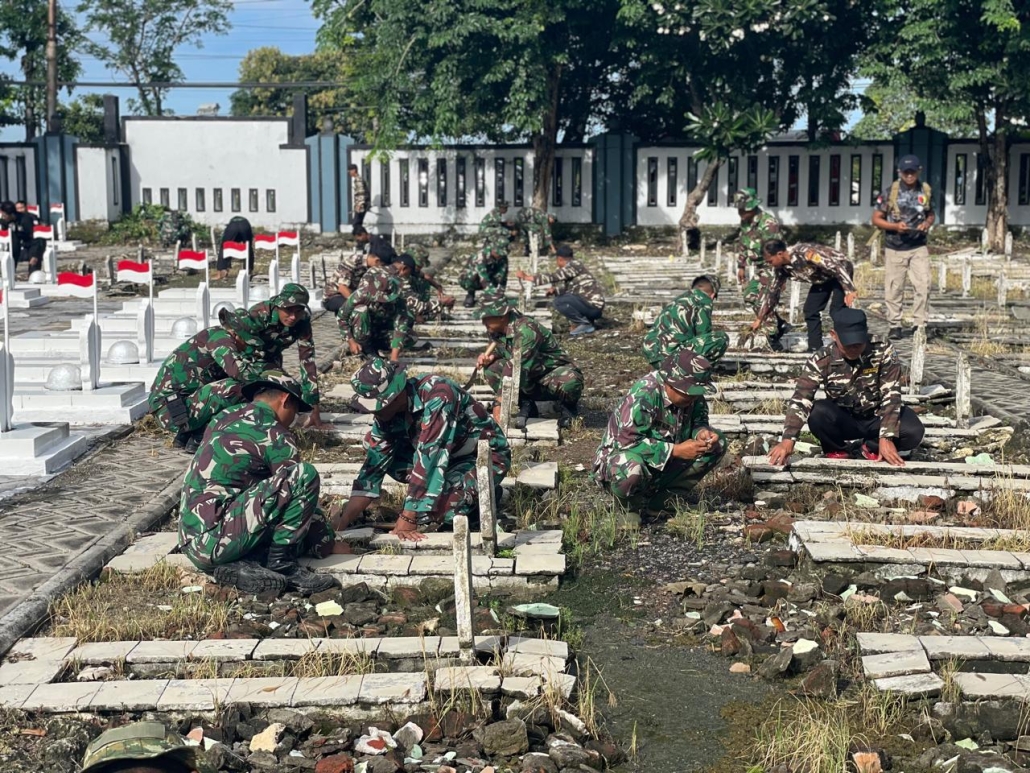 “Kegiatan ini mencerminkan kecintaan dan penghormatan prajurit TNI kepada para pahlawan yang telah gugur. Oleh karena itu, pembersihan TMP menjadi fokus utama, selain persiapan untuk upacara ziarah rombongan yang akan dilaksanakan besok,” ujar Mayor Eko.
