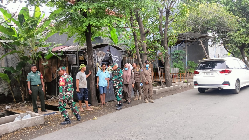 Sidoarjo, Dalam rangka menjaga fungsi lahan sebagai bagian dari ketahanan pangan, Anggota Koramil 0816/16 Waru di bawah pimpinan Peltu Puji Suyanto bersama Forkopimka Waru melaksanakan kegiatan pemberian peringatan kepada pemilik bangunan liar (Bangli) di Dusun Ambeng-Ambeng, Desa Ngingas, Kecamatan Waru. Langkah ini dilakukan untuk memastikan pemanfaatan lahan sesuai peruntukan demi keberlanjutan lingkungan dan kesejahteraan masyarakat.