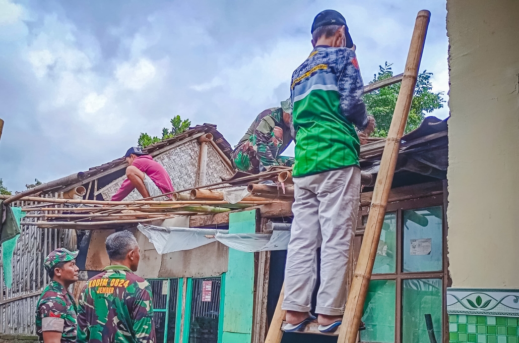 Jember – Sebagai bentuk tanggap darurat terhadap bencana angin puting beliung yang melanda Desa Plalangan, Kecamatan Kalisat, personel Koramil 0824/03 Kalisat dipimpin oleh Peltu Wiwit (Batituud) melaksanakan kerja bakti memperbaiki atap rumah warga yang rusak. Selasa, (10/12/2024).