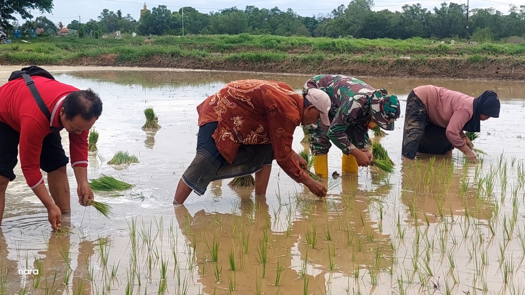 Pendampingan Penanaman Padi oleh Babinsa Blega Tingkatkan Semangat Petani Lokal