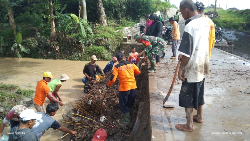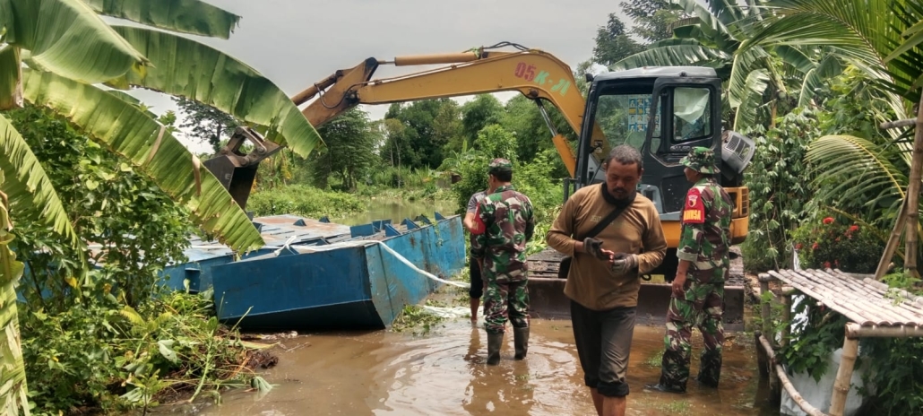 Sidoarjo,- Wujud Perhatian Babinsa Pantau Lokasi bencana banjir yang berakibat meluapnya air sungai, dimana sungai tidak mampu menampung curah hujan sehingga berakibat genangan air masuk kepemukiman rumah warga yang ada di Wilayah binaan di Desa Grmpolklutuk kec. Tarik Kab. Sidoarjo.