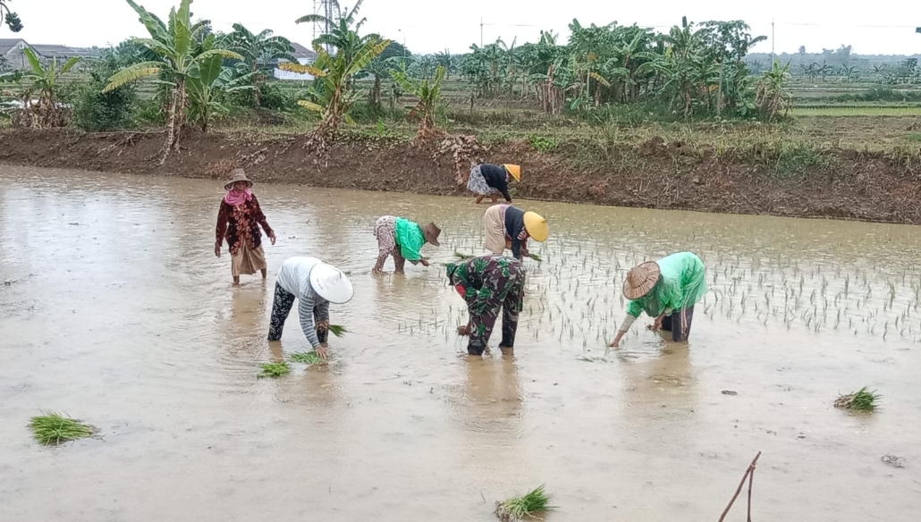 Babinsa Serka Doni Dampingi Warga Tanam Padi untuk Ketahanan Pangan Desa Taman