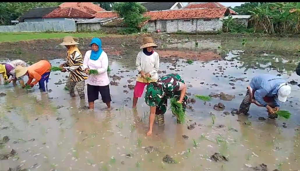 PAMEKASAN – Dalam upaya mendukung program ketahanan pangan nasional, Babinsa Desa Palengaan Dajah, Pelda Atikur Rahman, memberikan pendampingan kepada petani di wilayahnya. Salah satu kegiatan yang dilaksanakan adalah membantu penanaman padi di lahan milik Suhermanto, warga Dusun Trateh, Desa Palengaan Dajah, Kecamatan Palengaan, Pamekasan.