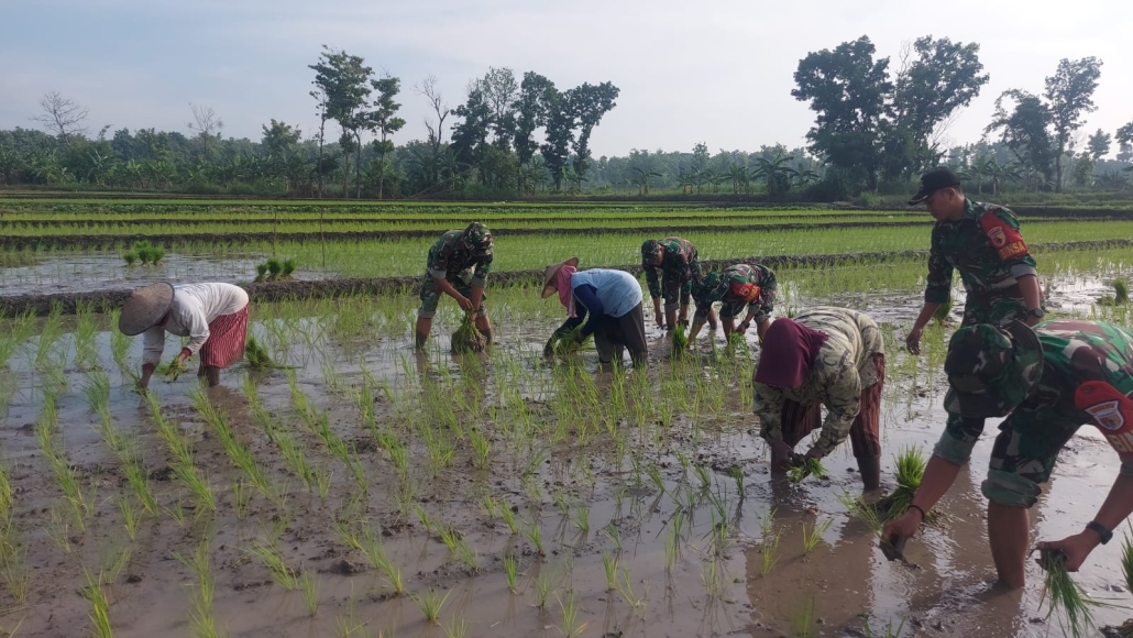 Jombang – Babinsa Koramil Kudu, Serka Tarmaji, terjun langsung ke sawah untuk mendampingi petani di Desa Made, Kecamatan Kudu. Kegiatan ini bertujuan mendukung ketahanan pangan nasional melalui peningkatan produktivitas pertanian di wilayah tersebut.