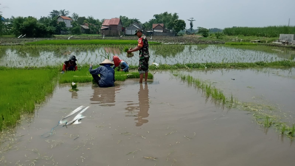 Jombang – Dalam upaya percepatan masa tanam padi, Serka Sumadi ikut turun ke sawah untuk membantu para petani di Dusun Kepuh Desa Kepuhdoko, Kecamatan Tembelang,Kabupaten Jombang Jatim, Minggu (05/01/2025).