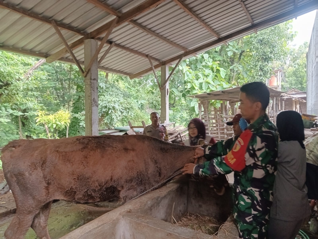Madiun, – Babinsa Desa Rejosari, Sertu Hariyanto, melaksanakan pendampingan kegiatan penyuntikan vaksinasi tahap pertama pada hewan ternak sapi milik warga Desa Rejosari, Kecamatan Kebonsari, Kabupaten Madiun, Minggu (26/1). Kegiatan ini merupakan langkah preventif untuk mencegah dan mengendalikan penyebaran virus Penyakit Mulut dan Kuku (PMK) yang rentan menyerang hewan ternak, khususnya sapi. Vaksinasi ini dilakukan sebagai upaya bersama antara pemerintah dan masyarakat untuk menjaga kesehatan hewan ternak sekaligus mendukung ketahanan pangan di wilayah tersebut.