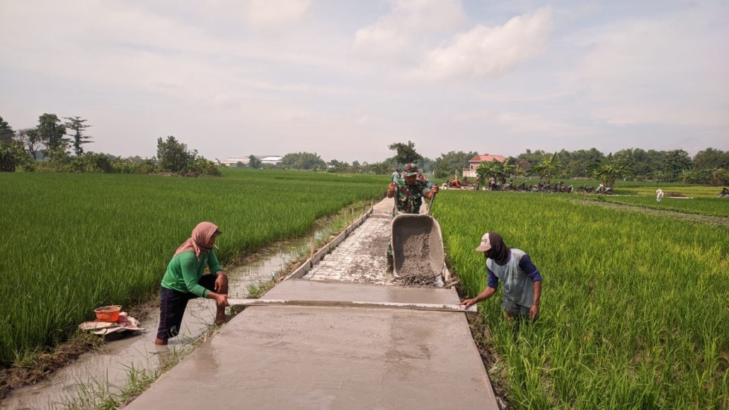 Jombang – Untuk mempermudah para petani dalam mengangkut hasil pertaniannya, Babinsa 09 Kudu, Serda Suapdi bersama perangkat desa dan masyarakat melaksanakan kerja bakti pengecoran jalan sawah yang berlokasi di Desa Sidokaton , Kecamatan Kudu, Kab. jombang, Senin (27/1/2025).