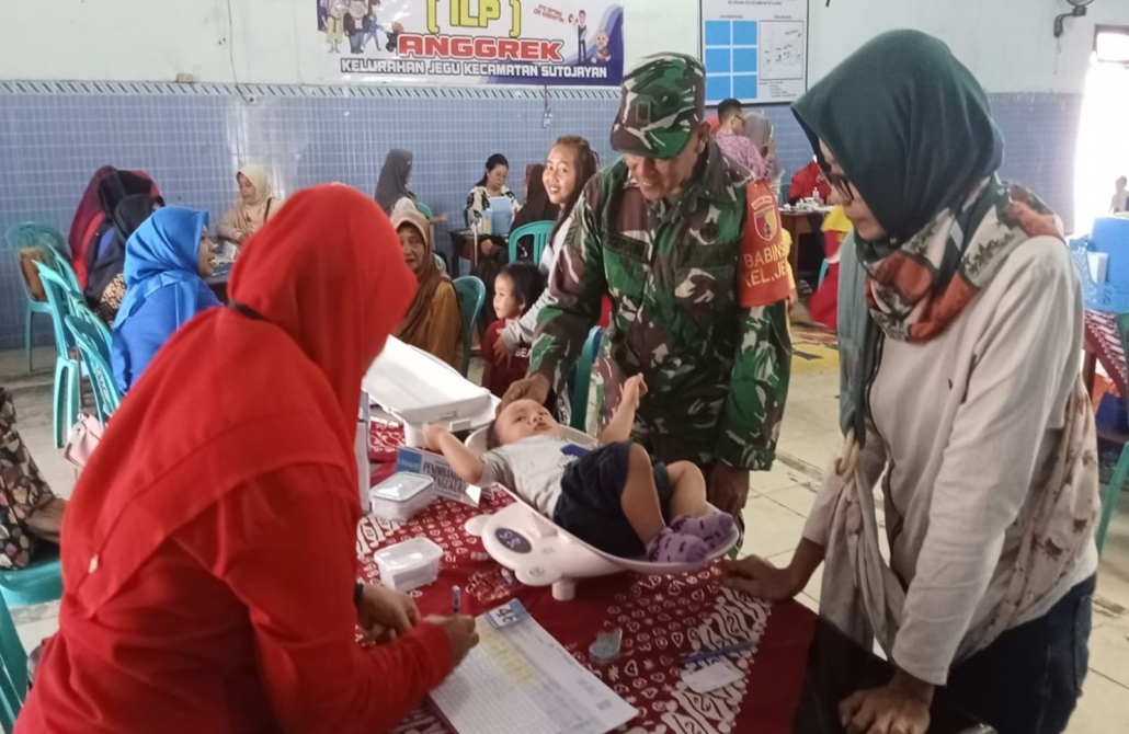 Babinsa Kelurahan Jegu, Serka Dwijo Saputro turut membantu petugas kesehatan dalam memberikan edukasi kepada para ibu hamil dan orang tua balita mengenai pentingnya asupan gizi seimbang. Selain itu ia juga mengajak masyarakat untuk rutin membawa anak-anak mereka ke Posyandu guna memantau tumbuh kembangnya secara berkala.