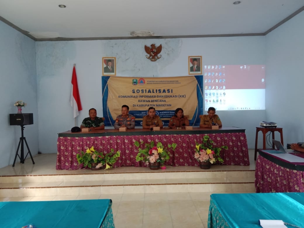 “Sosialisasi Kesiapsiagaan penanggulangan dan mitigasi bencana kepada masyarakat, sebagai wujud melaksanakan kesiapan dalam tugas dan fungsi pos komando (Posko) diwilayah yang rawan terdampak bencana”, adapun yang hadir dalam kegiatan sosialisasi diantaranya Plt Kalaksa BPBD Magetan Suwito, AP, MSi, Wakapolsek Iptu Nur Taufik S,Sos, Danpos Kartoharjo Peltu Nanang BS, Kasi Trantib Sigit Wardana,S.Sos, Kepala Desa Mrahu Puryanto,S.T, Babinsa, Bhabinkantimas, Warga Desa Mrahu.