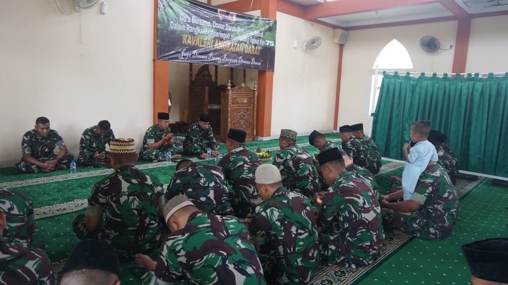 Sidoarjo,- Penkikav-3/TSC – Prajurit Kikav 3/TSC dan Persit KCK Ranting BS Kikav 3/TSC PD V/Brawijaya melaksanakan Doa Bersama dalam rangka menyambut HUT Kavaleri TNI AD ke – 75 Tahun 2025, di Masjid At – Taqwa Kikav 3/TSC.