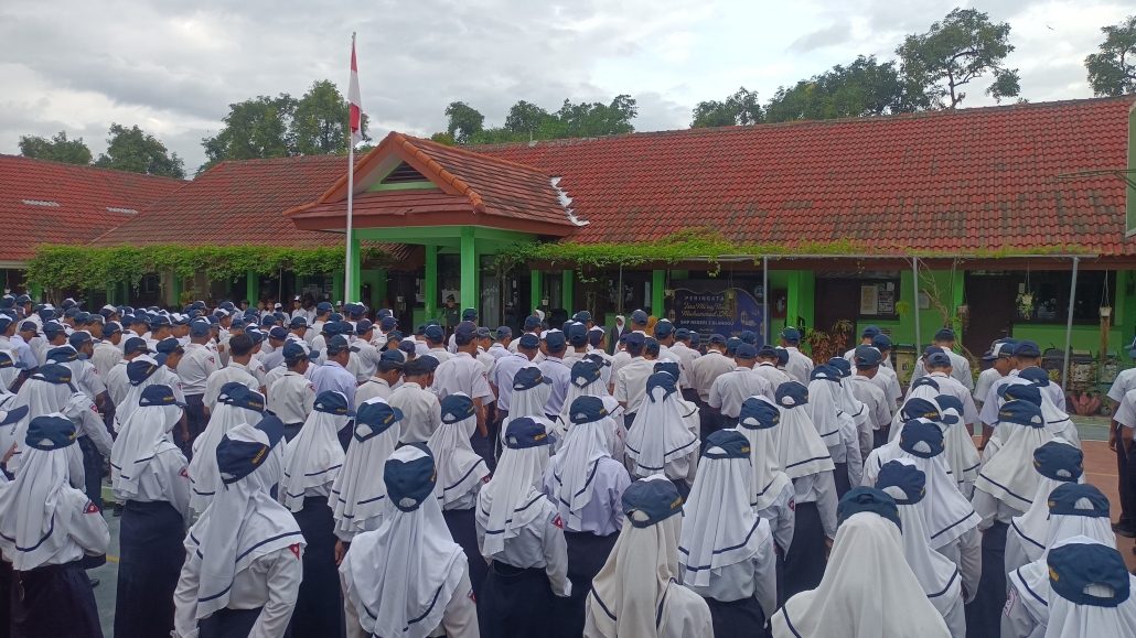 Mojokerto, – Dalam rangka membangun karakter generasi muda yang disiplin dan berwawasan kebangsaan, Babinsa Jrambe Koramil 0815/14 Dlanggu Kodim 0815/Mojokerto, Sertu Muhammad Rusdin, membekali siswa-siswi SMPN 2 Dlanggu Wawasan Kebangsaan (Wasbang) yang digelar di halaman SMPN 2 Dlanggu, Desa Jrambe, Kecamatan Dlanggu, Kabupaten Mojokerto, Jawa Timur.