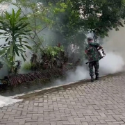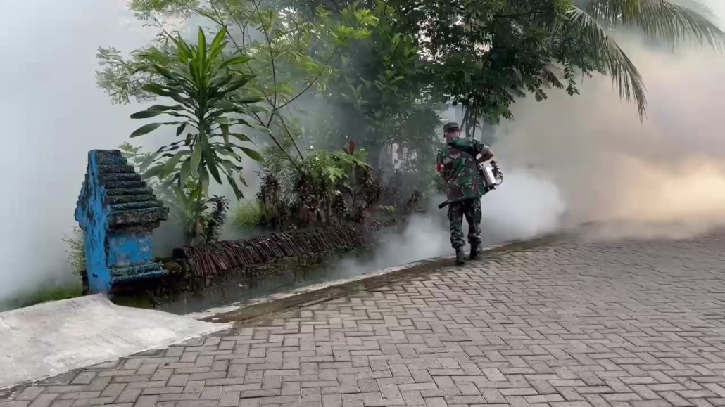 “Kami dari Koramil 0815/04 Puri bersama pihak Puskesmas dan pemerintah desa melaksanakan fogging di pemukiman warga, saluran air, tempat ibadah, serta fasilitas umum lainnya. Ini sebagai langkah pencegahan agar nyamuk aedes aegypti tidak berkembang biak dan menularkan DBD,” ujar Serka Zainul Imron.