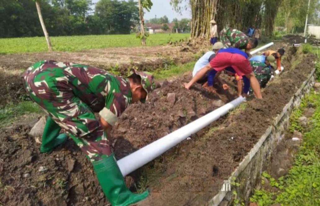 Danramil Tipe B 0804/08 Barat Kapten Inf Denni Erwanto mengatakan, Dalam upaya mendukung kesuksesan program tersebut Dari Koramil 08/Barat terjunkan Babinsa langsung ke lapangan untuk membantu dan berkoordinasi dengan pihak-pihak terkait sebagai bentuk pengawasan terhadap proses instalasi pipa agar sesuai dengan harapan, Pungkas Danramil