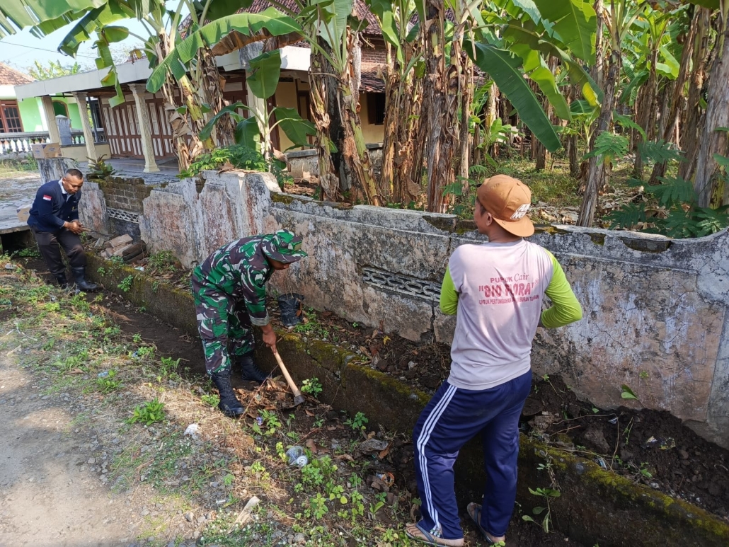 Babinsa dan Warga Wonoasri Laksanakan Kerja Bakti Pembersihan Parit Bersama