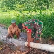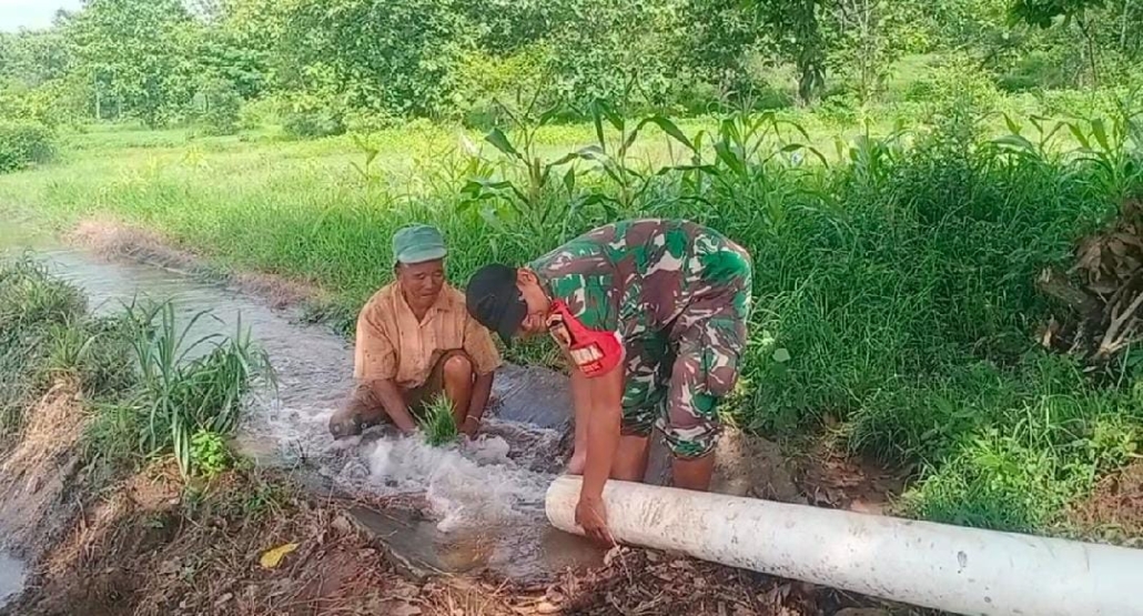 PAMEKASAN – Babinsa Kaduara Barat, Koramil 0826-05 Larangan, Koptu Muzammil, aktif melakukan pendampingan pertanian dengan membantu proses pengairan sawah milik warga di Desa Kaduara Barat, Kecamatan Larangan, Kabupaten Pamekasan.