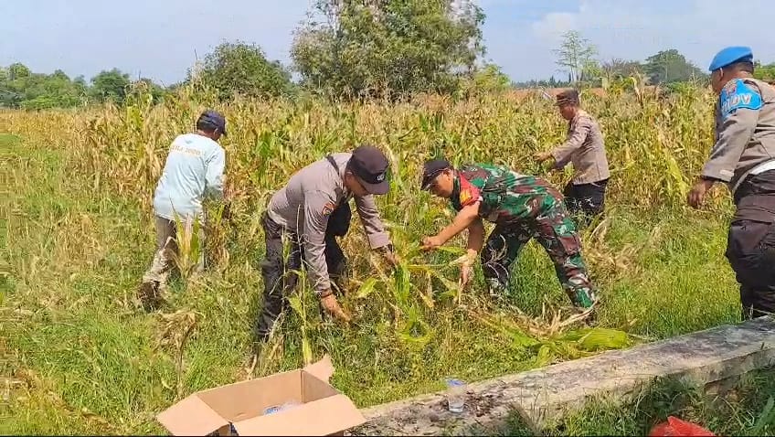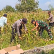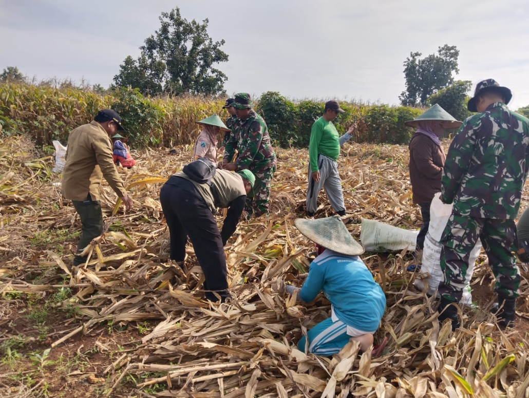 Kemanunggalan TNI dengan Rakyat Terwujud dalam Panen Jagung di Desa Tebluru