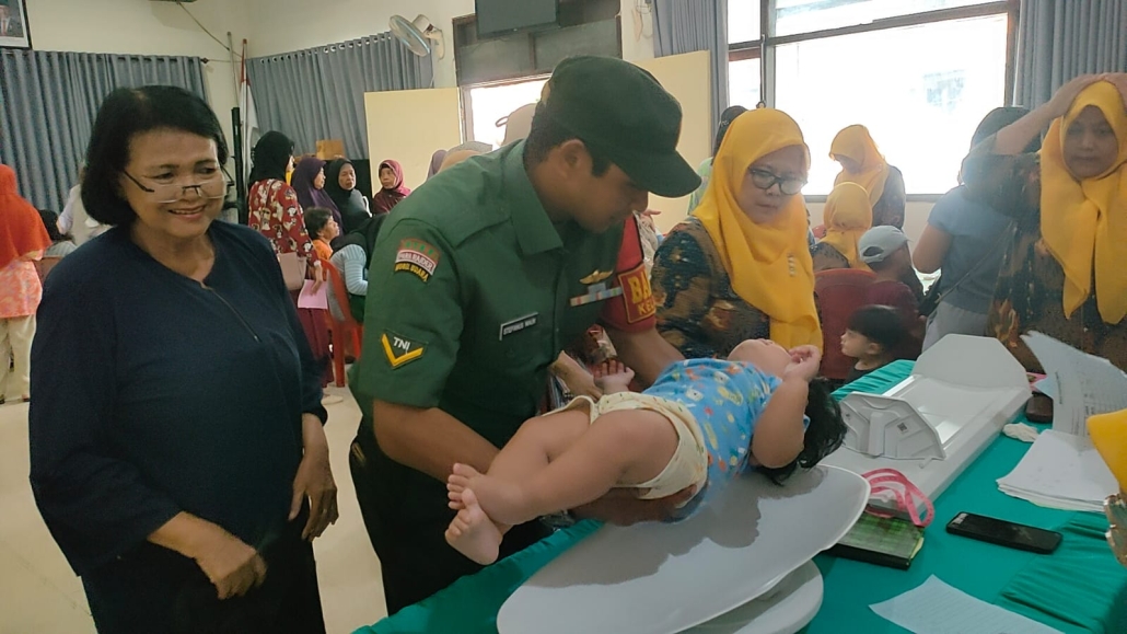 Kota Malang,- Babinsa dari Koramil 0833/01 Kelurahan Bareng Kecamatan Klojen Serda Putu dan Serda Stefanus bersama dengan petugas kesehatan setempat melaksanakan pendampingan kegiatan Posyandu Balita di Kelurahan Bareng Kecamatan Klojen Kota Malang, Kegiatan ini bertujuan untuk meningkatkan kesadaran masyarakat, khususnya ibu-ibu, tentang pentingnya kesehatan balita dan penerapan pola hidup sehat, Minggu,( 23/02/2025).