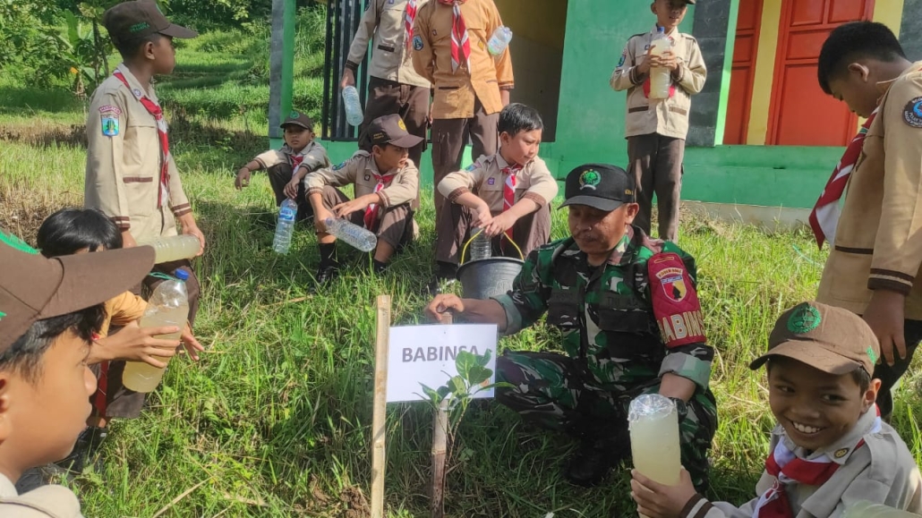 Magetan,- Babinsa desa Baleasri Posramil Ngariboyo koramil Tipe B 0804/01 Magetan Kodim 0804 Magetan Sertu Sutrisno melaksanakan kegiatan penaman pohon dalam rangka kegiatan Pramuka bakti masyarakat peduli lingkungan GO GREEN yang bertempat di Embung Desa Baleasri Kecamatan Ngariboyo Kabupaten Magetan.
