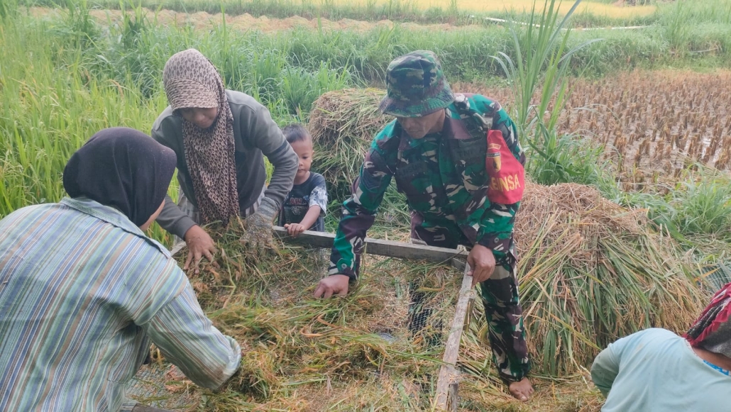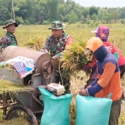 Selain memberikan informasi, Babinsa juga ikut mendampingi petani dalam proses panen untuk memberikan motivasi dan dukungan. Salah satu petani yang tergabung dalam Poktan Mukti II, Bapak Tubianto (47 th) mengungkapkan rasa terima kasihnya atas perhatian dan pendampingan yang diberikan Babinsa.