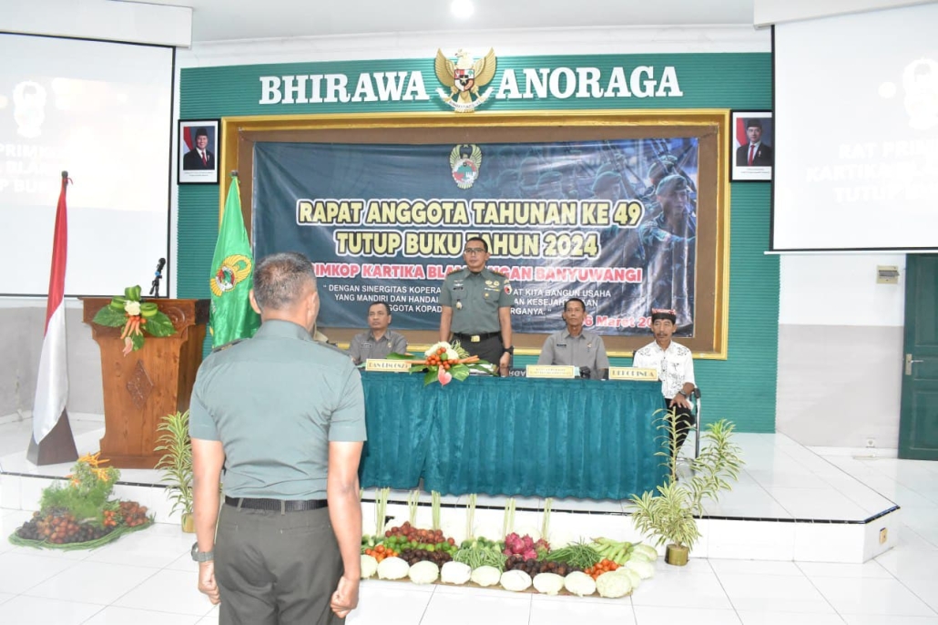 BANYUWANGI – Hari ini Jumat, (07-03-2024) Kodim 0825/Banyuwangi laksanakan Rapat Anggota Tahunan Ke-49 Tutup Buku Tahun 2024 Primkop Kartika Blambangan Banyuwangi dilaksanakan di aula Panglima Sudirman Makodim 0825/Banyuwangi jalan RA Kartini Nomor 02 Kepatihan Kabupaten Banyuwangi.